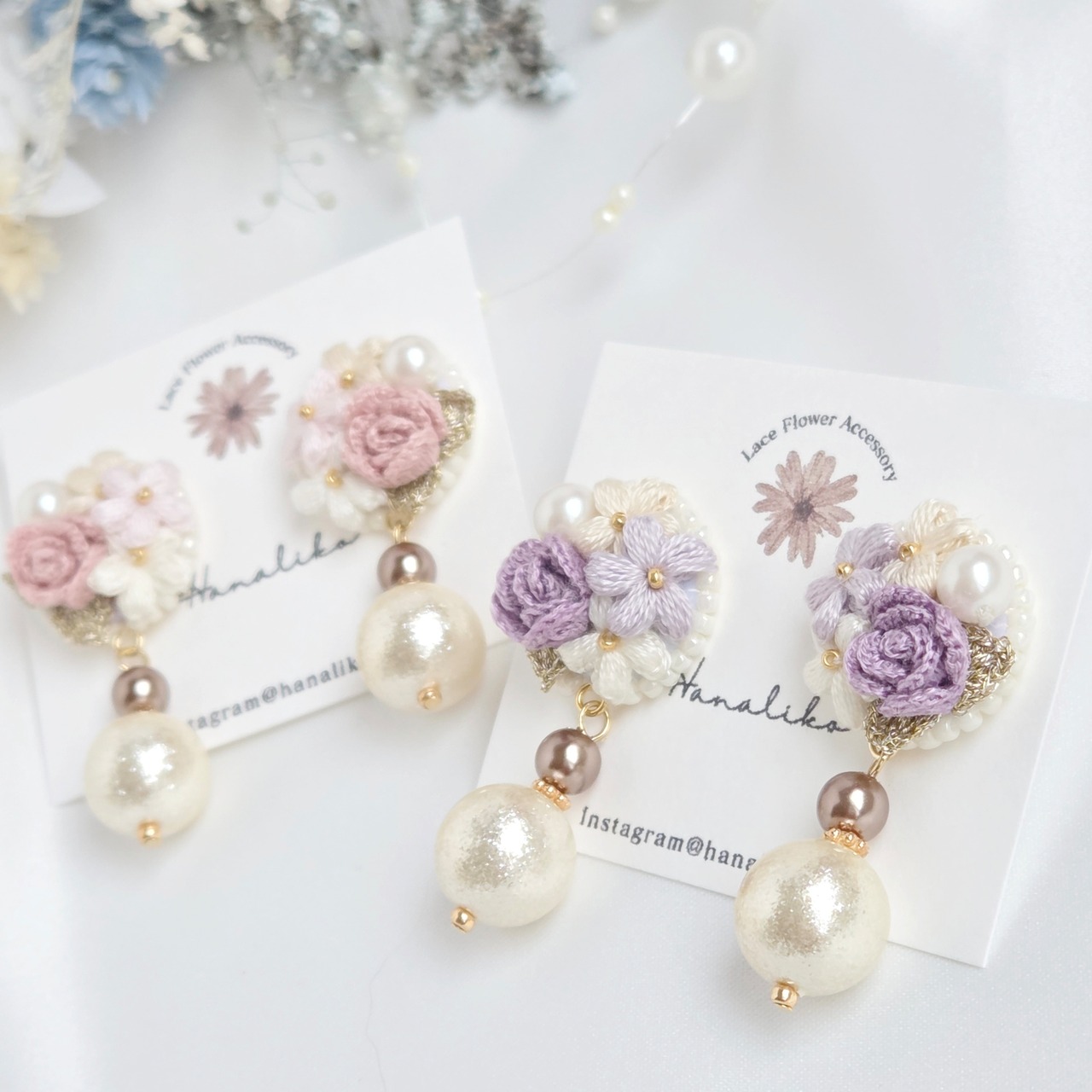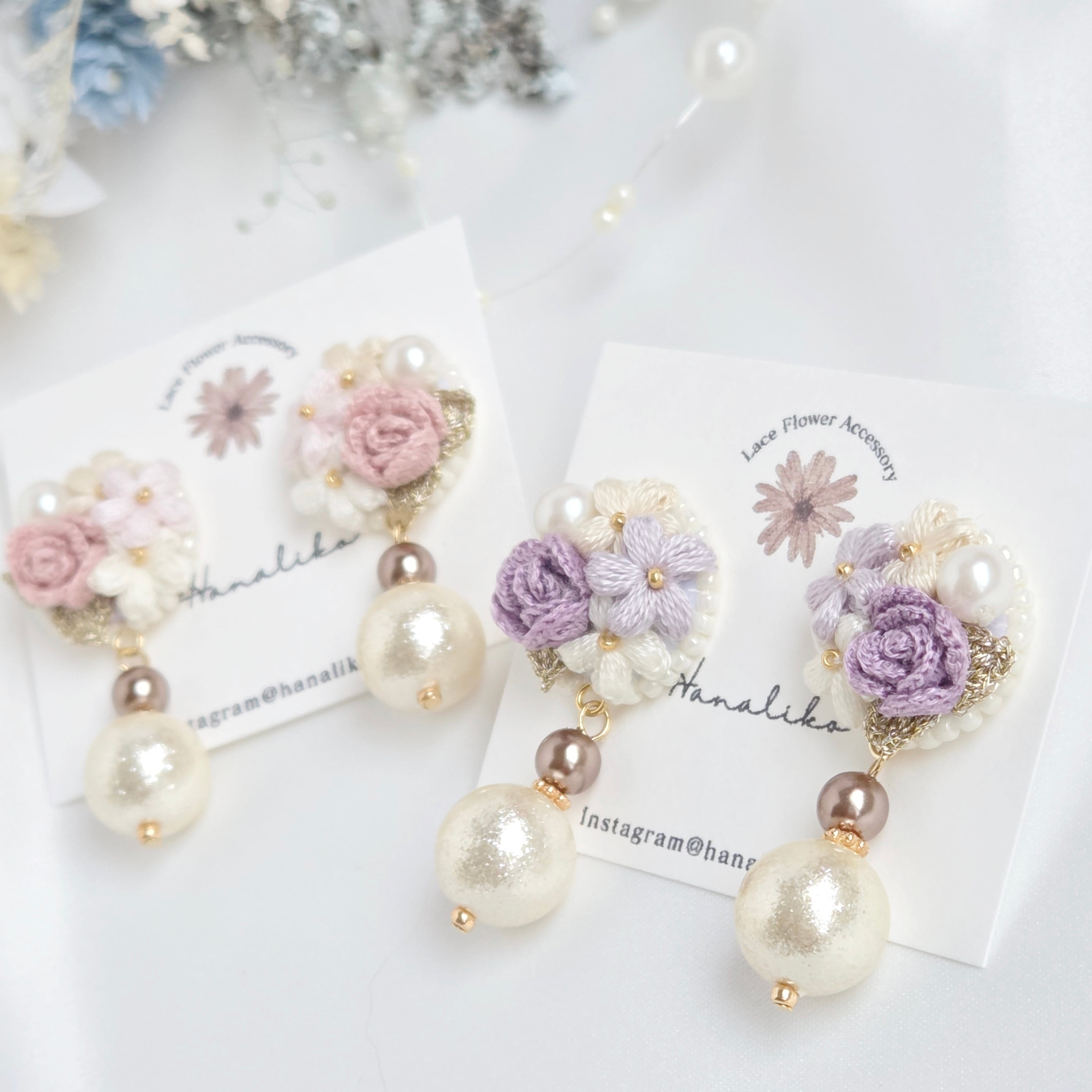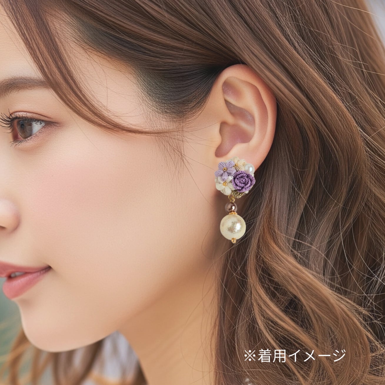 繊細な薔薇に小花やパールを添え、ブーケのように立体的に仕立てました。