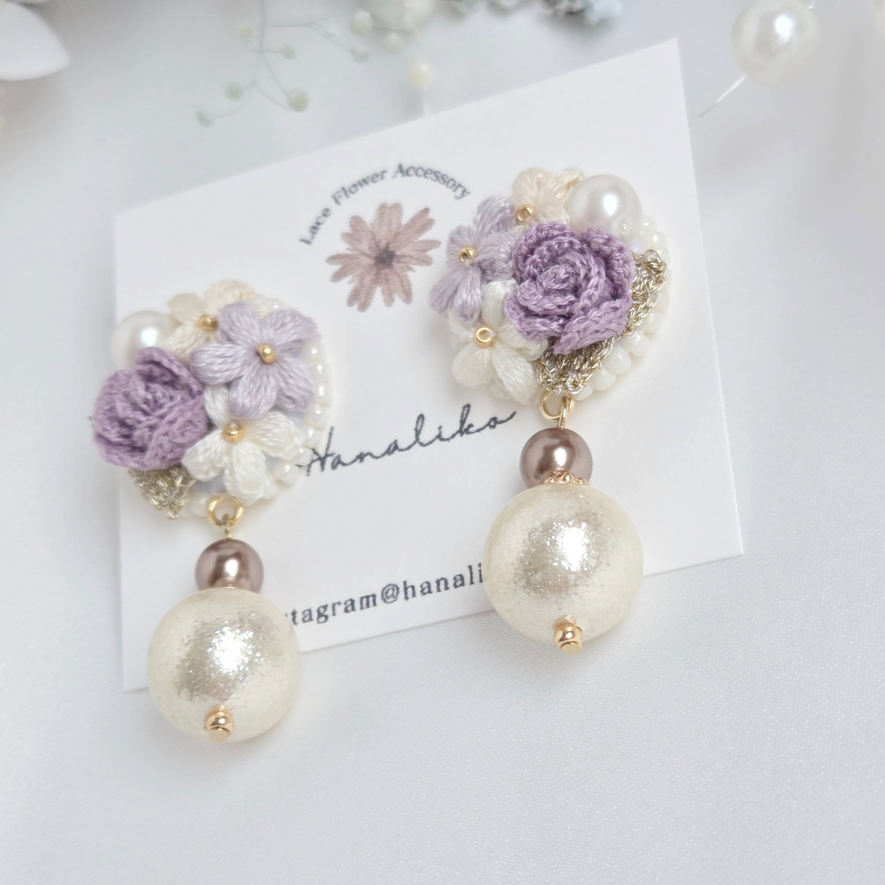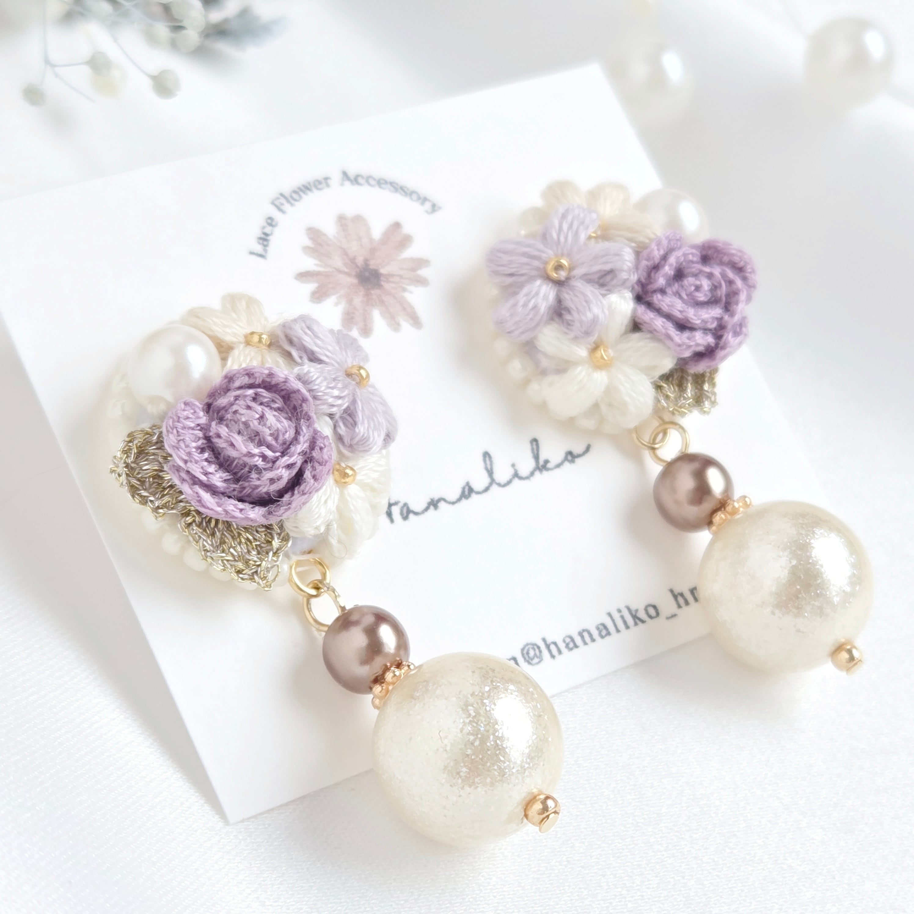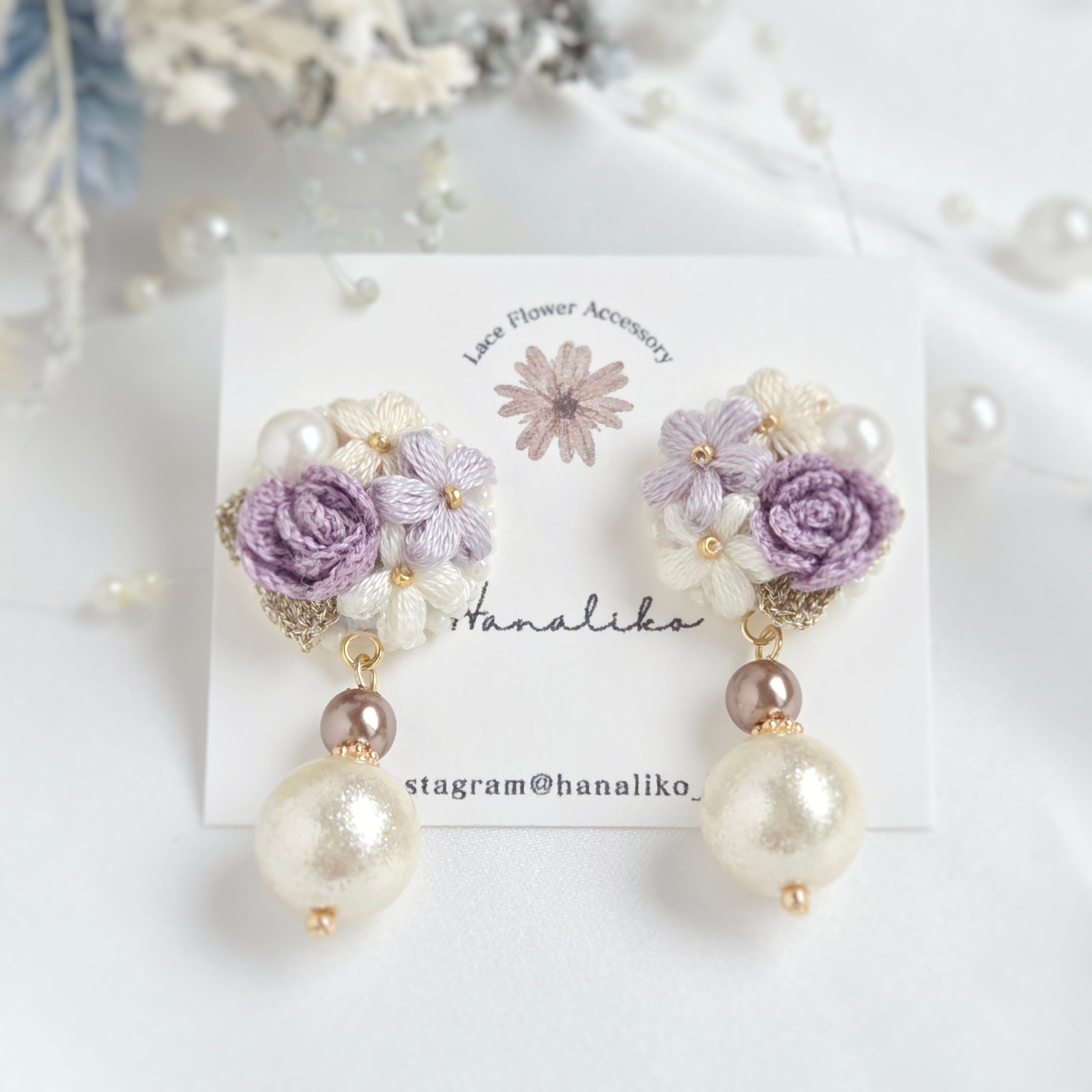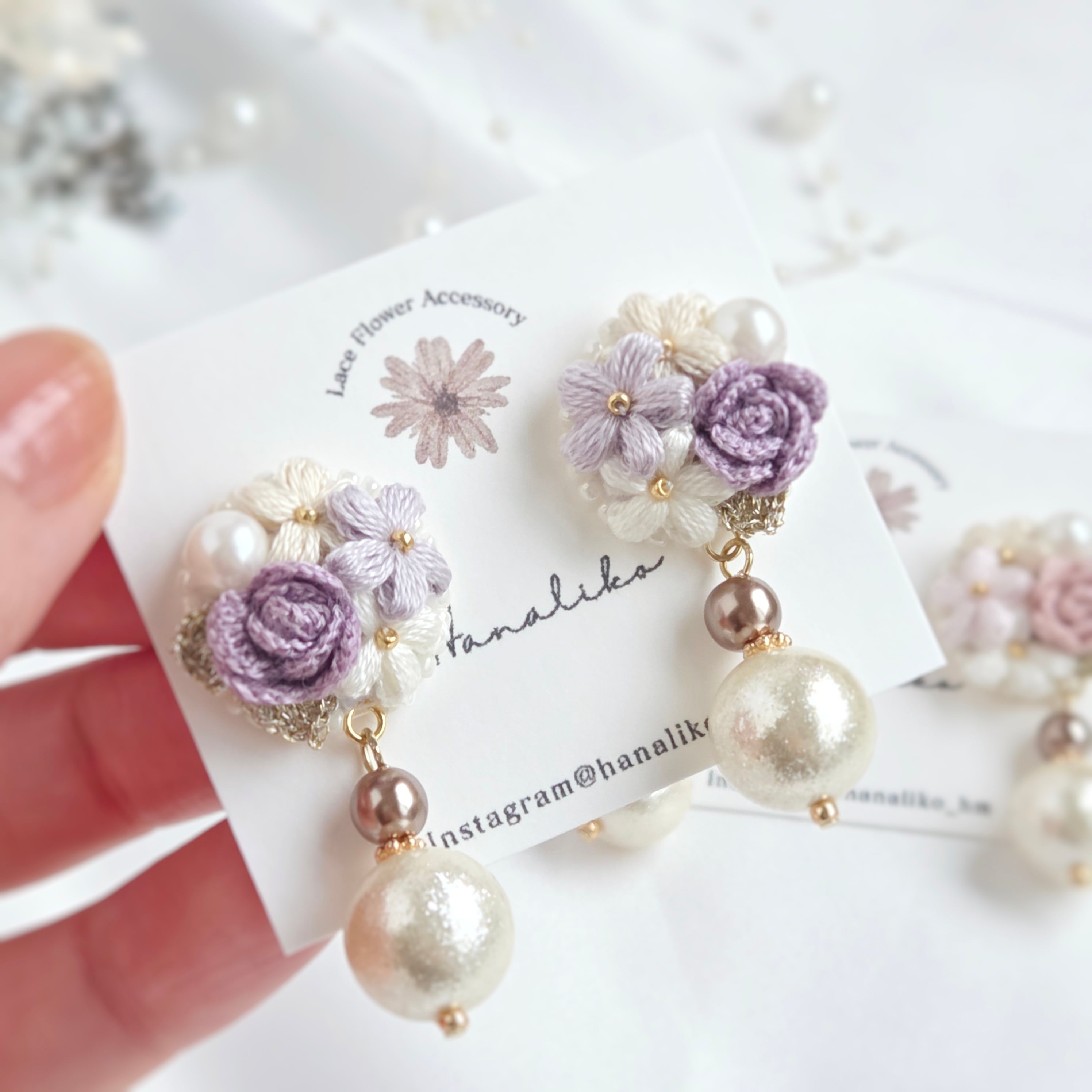繊細な薔薇に小花やパールを添え、ブーケのように立体的に仕立てました。