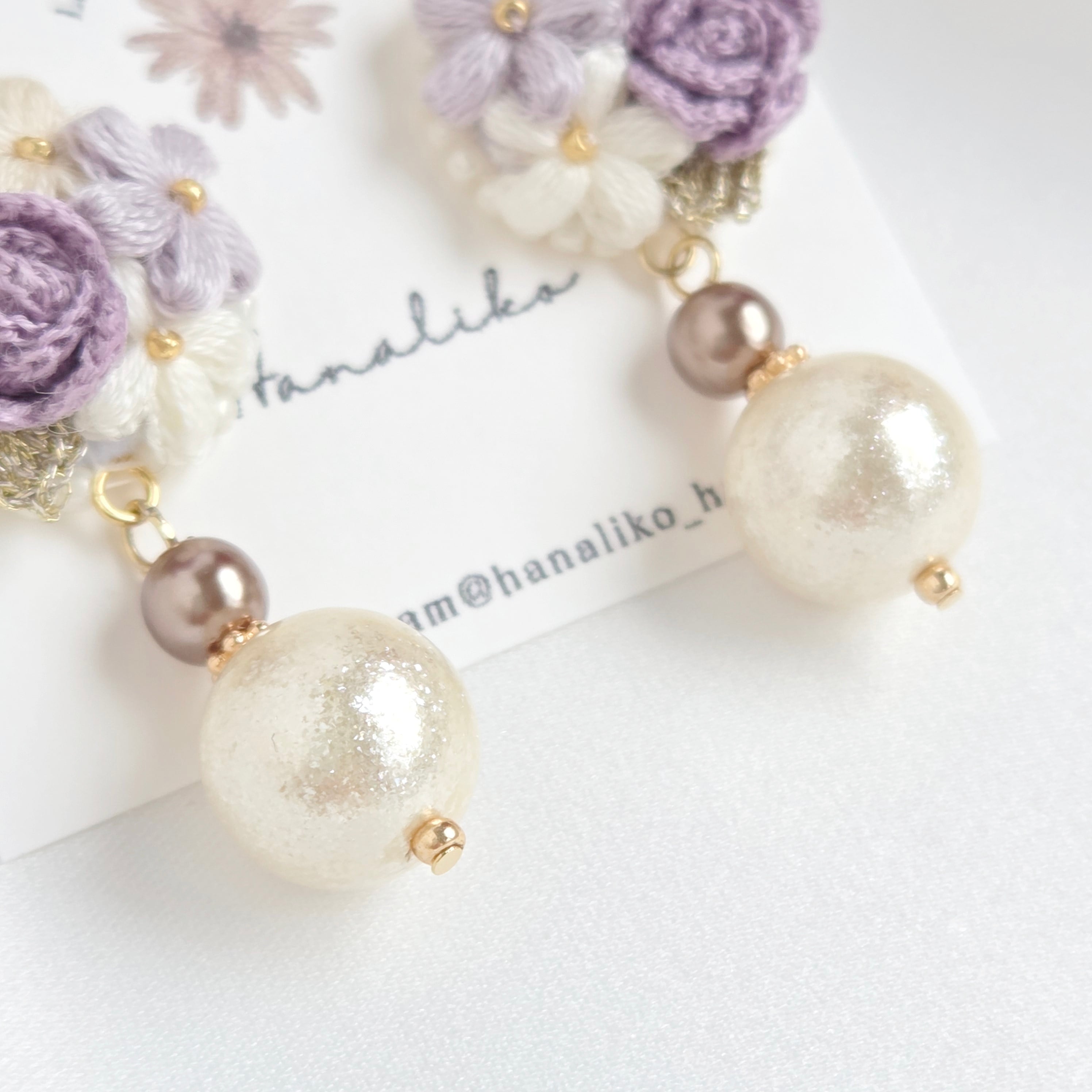 耳元でやさしく揺れる大粒パールは、冬の霜や雪を思わせる、上品でやわらかな艶感です。