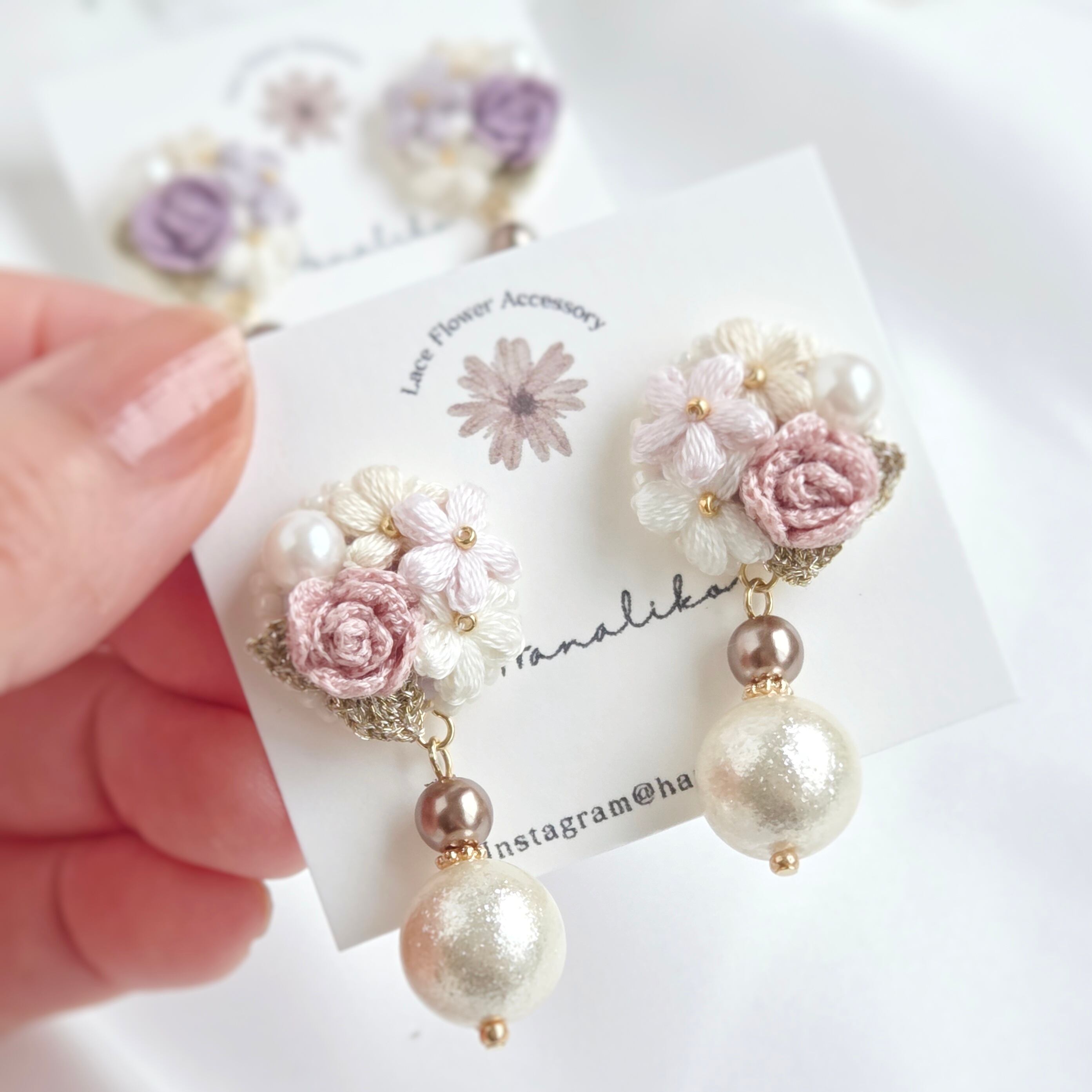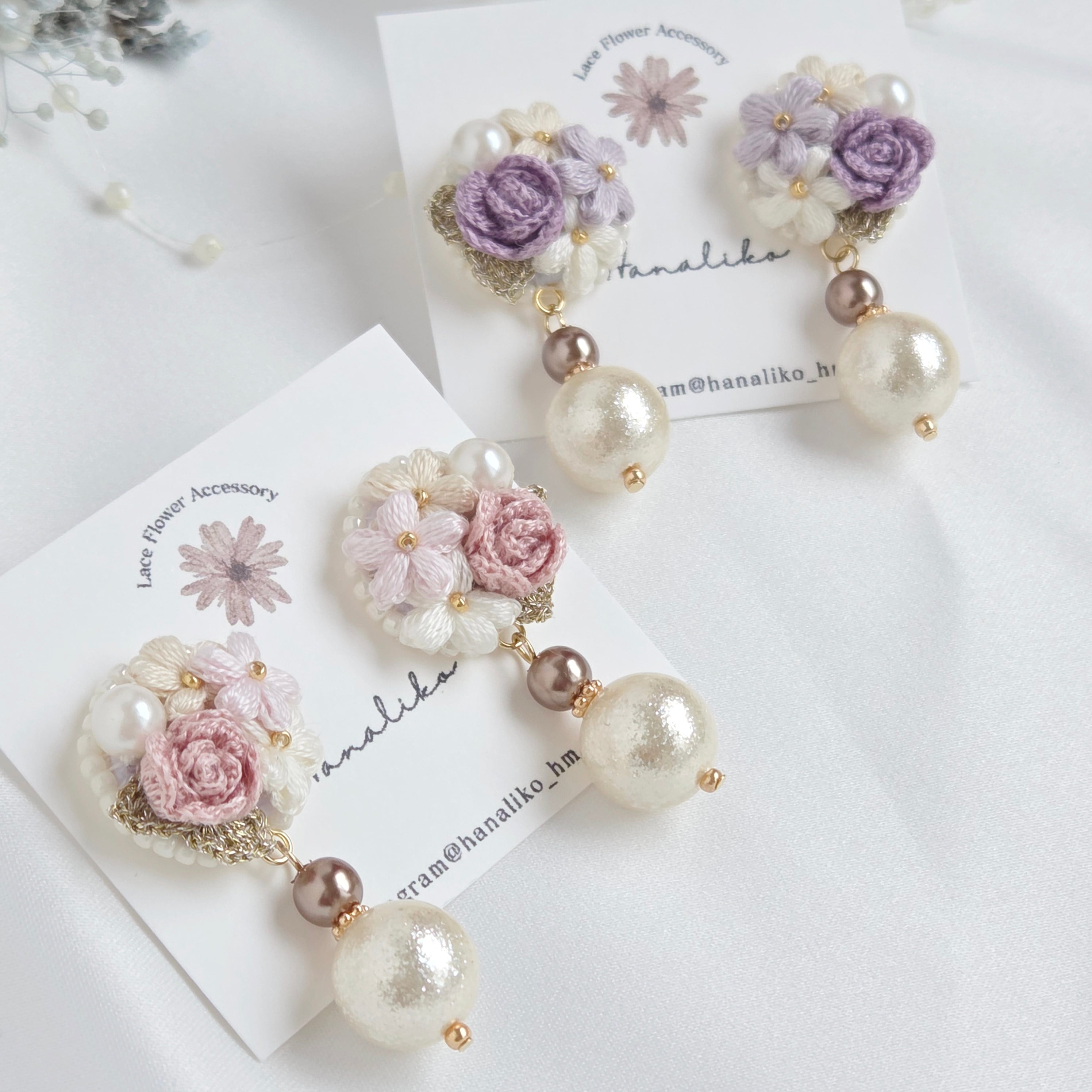 小さな薔薇を主役にした刺繍アクセサリー。