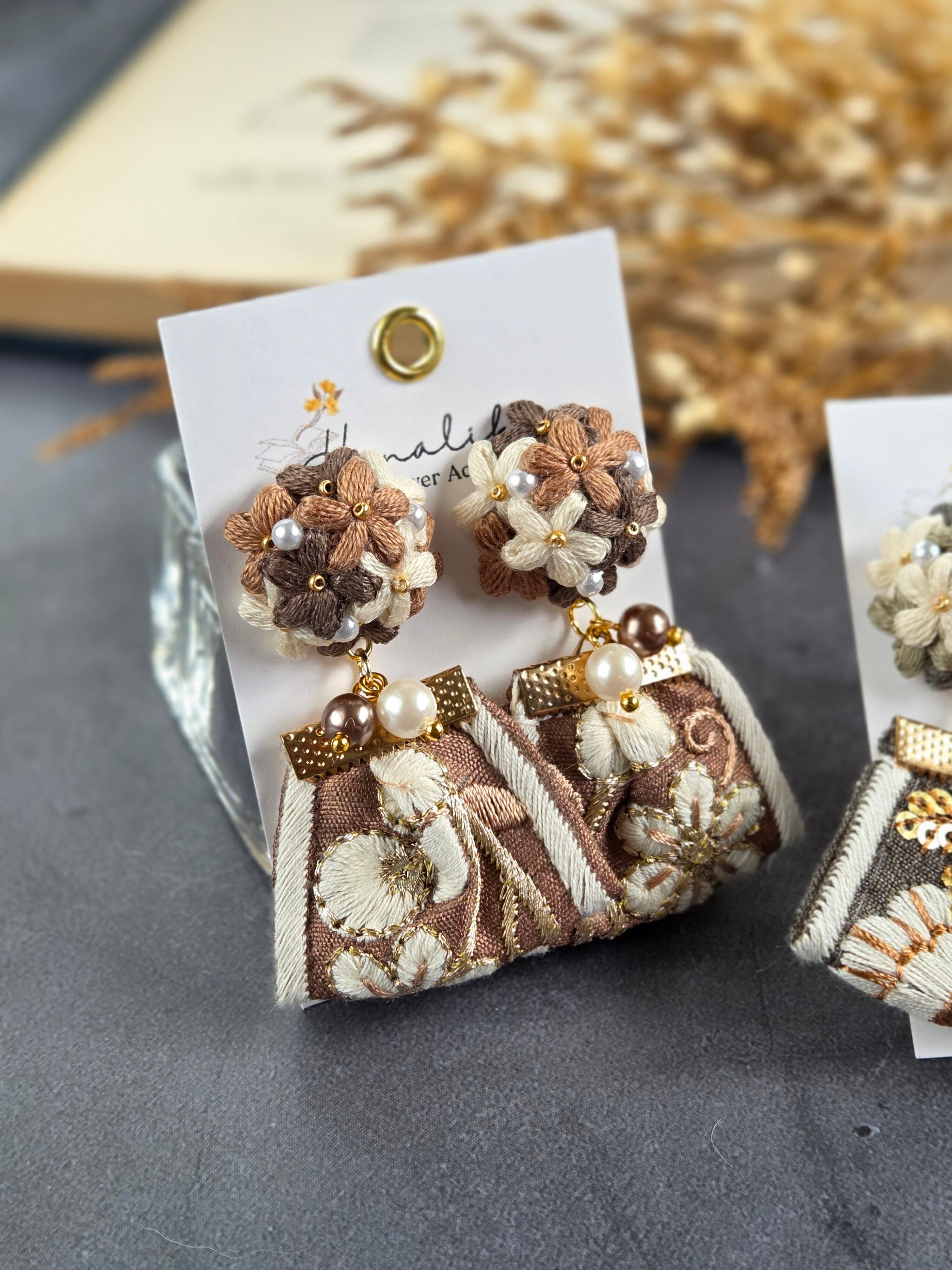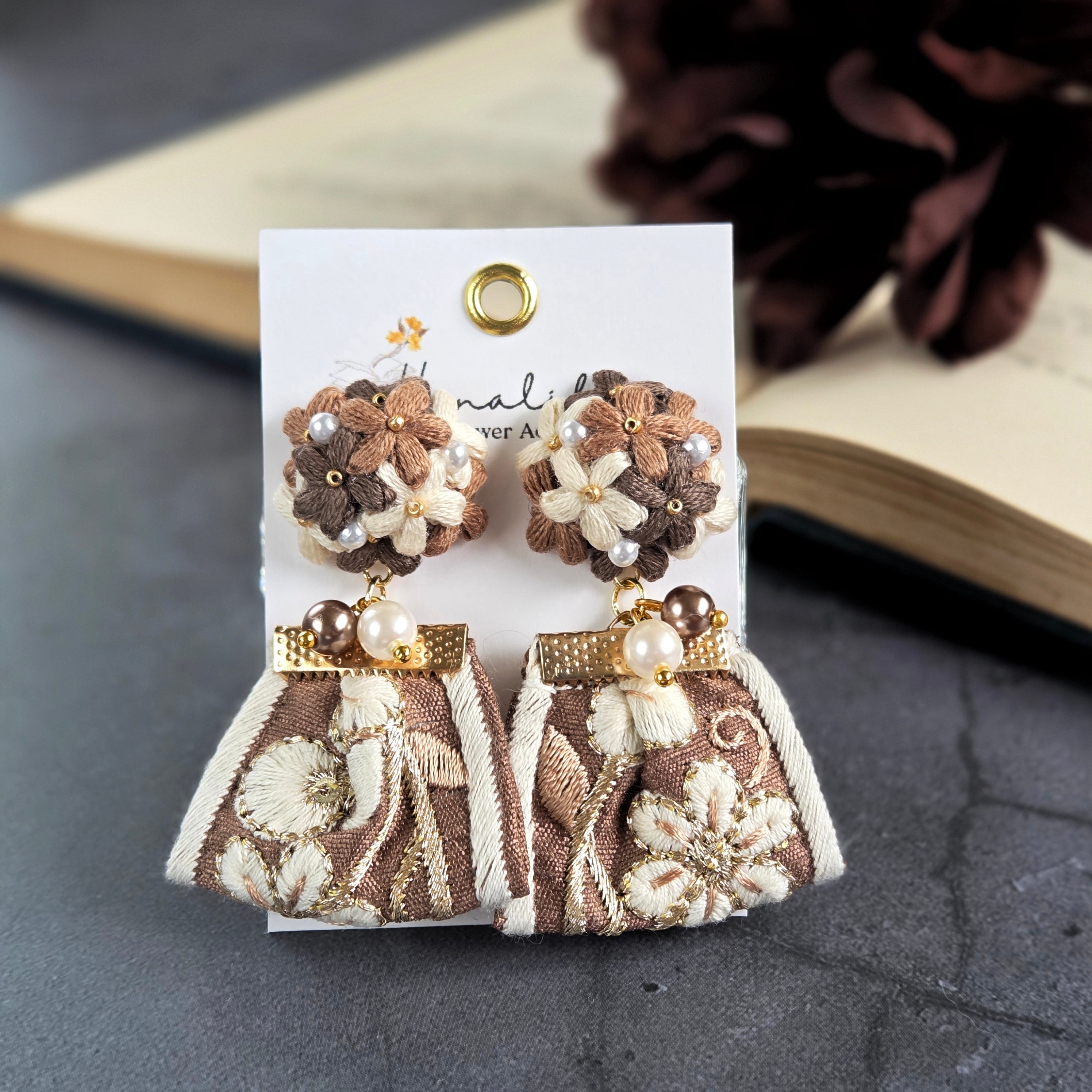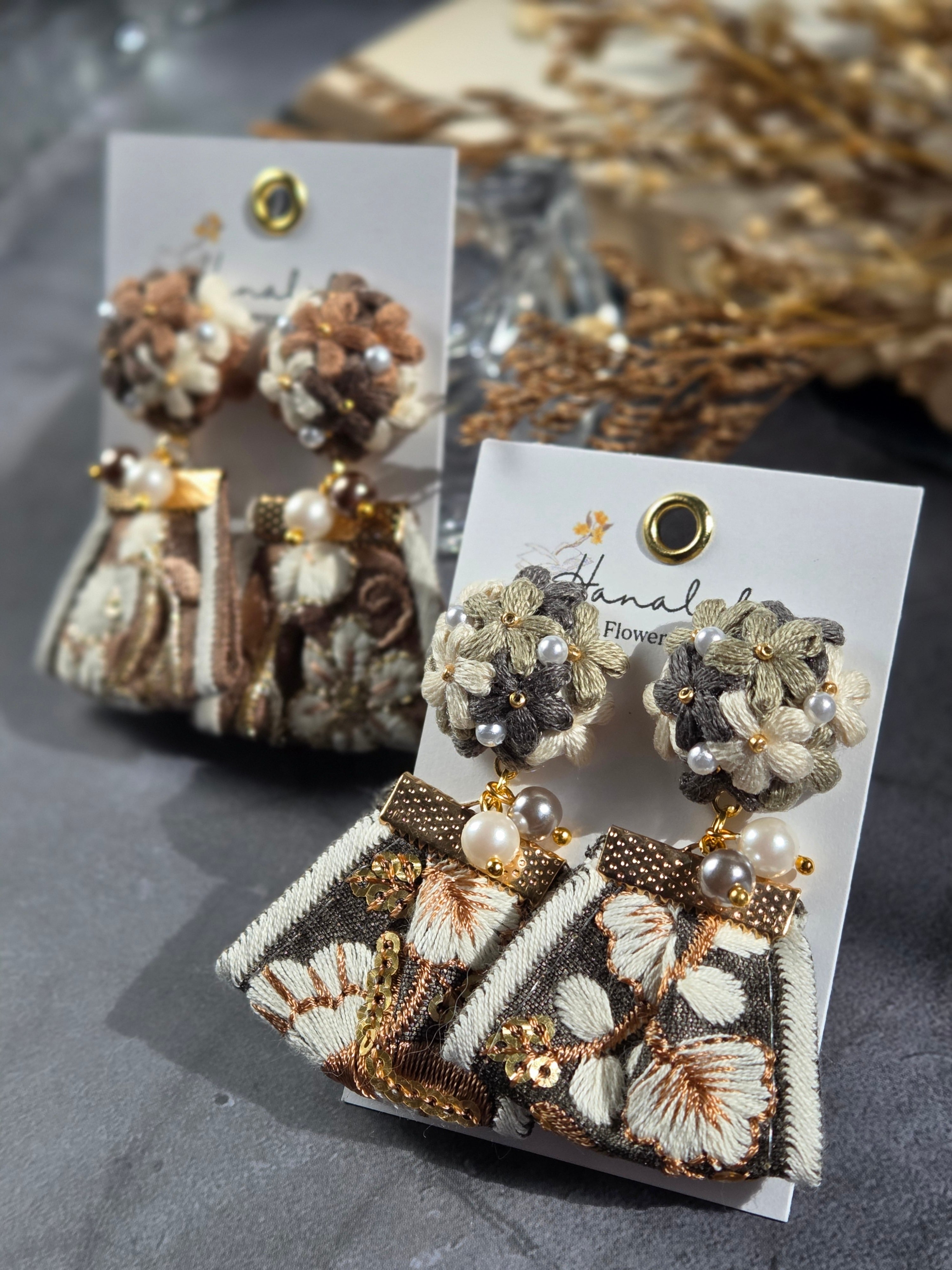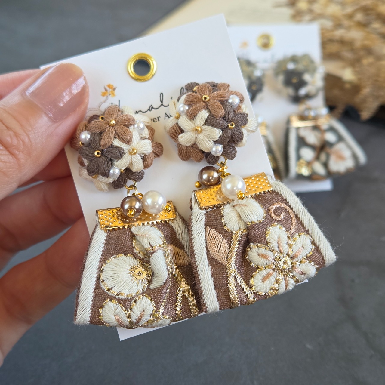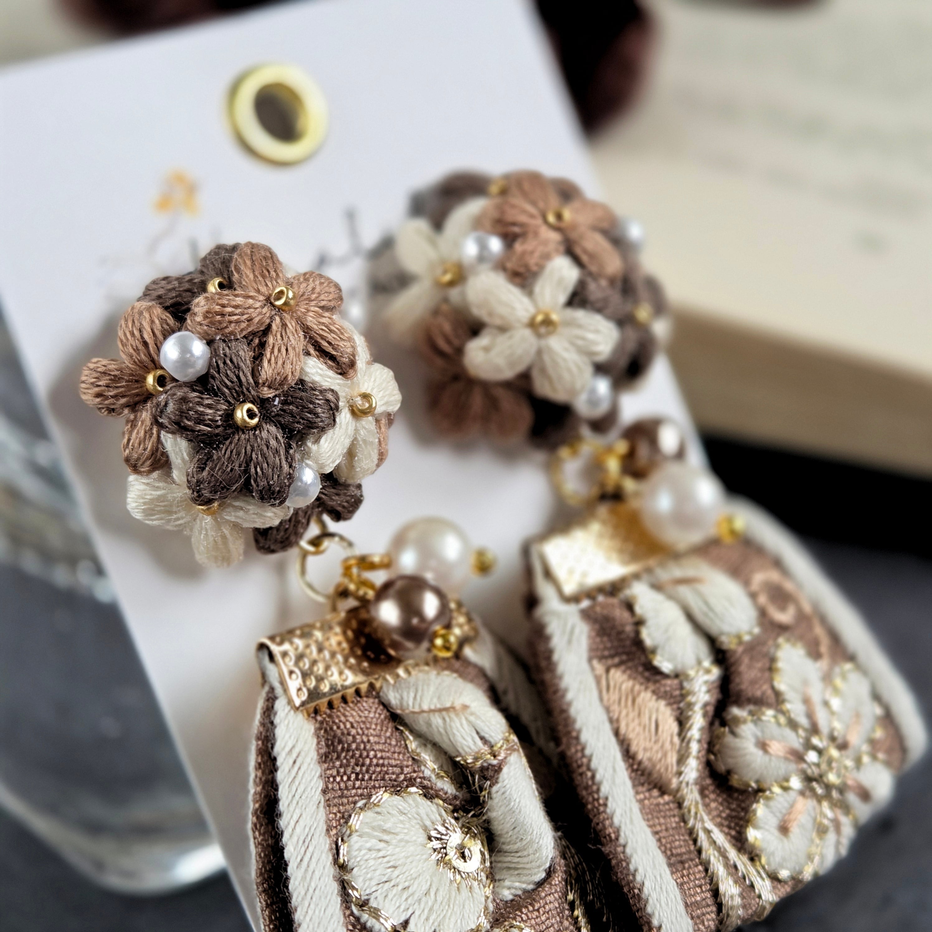 繊細な刺繍のお花と、ゴールド刺繍やスパンコールが美しいインド刺繍リボンが重なり、