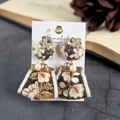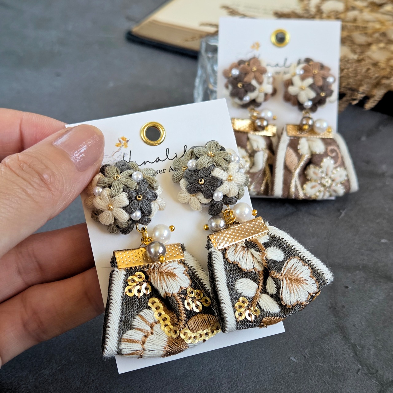 【フォレストグリーン】インド刺繍リボンイヤリング/ピアス|刺繍アクセサリー|上品くすみカラー